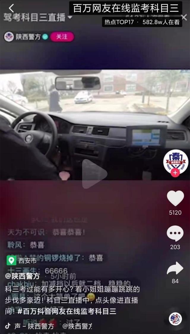 近日,陕西警方通过网络直播驾考科目三,吸引了百万网友在线“监考”。不少网友表示像是自己在考驾照一样,太刺激了,有的考生前面科目都合格,最后科目不幸“挂科”,不少网友发出了遗憾的叹息。
