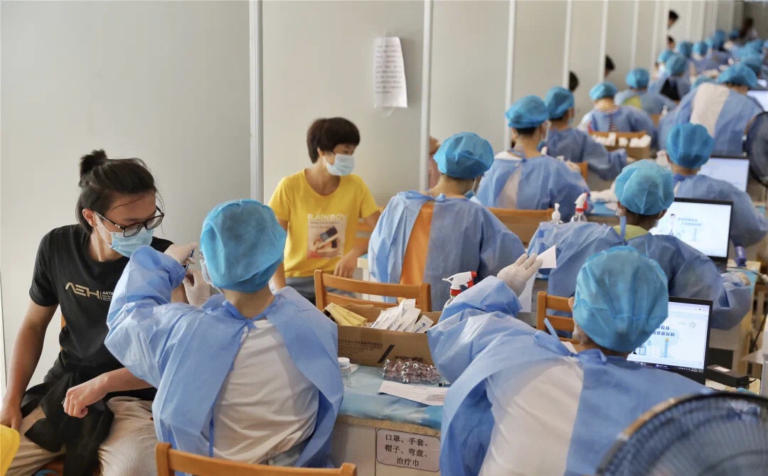 近期,市民群众对于新冠病毒疫苗接种热情高涨,广州市白云区内各疫苗接种点迎来大量接种人群,现场接种工作高效有序。