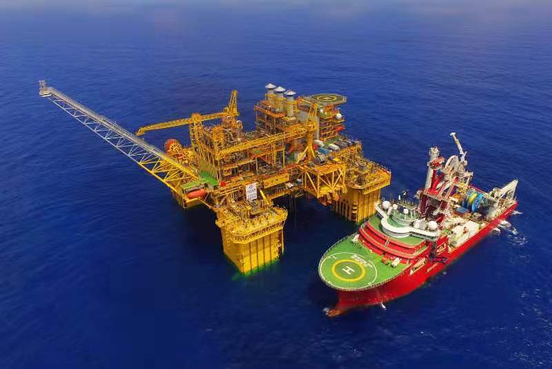 据了解,“深海一号”能源站于今年1月中旬从山东烟台启程,历时18天、航行1600多海里,顺利抵达海南岛东南陵水海域,落位“深海一号”大气田。此后,海油工程立即组织海上施工作业,先后投入十余条各类大型船舶,300多名施工人员在春节期间坚守海上一线,严抓疫情常态化防控和作业质量安全管理,专题研究海上施工作业风险。现场作业团队开展了上千种复杂工况模拟计算和桌面推演,持续优化施工方案,抢抓天气窗口期,高效开展平台的精准就位和系泊聚酯缆、油气输送管线的安装及对接等工作,先后成功完成14条海底管道的铺设连接和6条钢悬链线立管的铺设提升作业。
