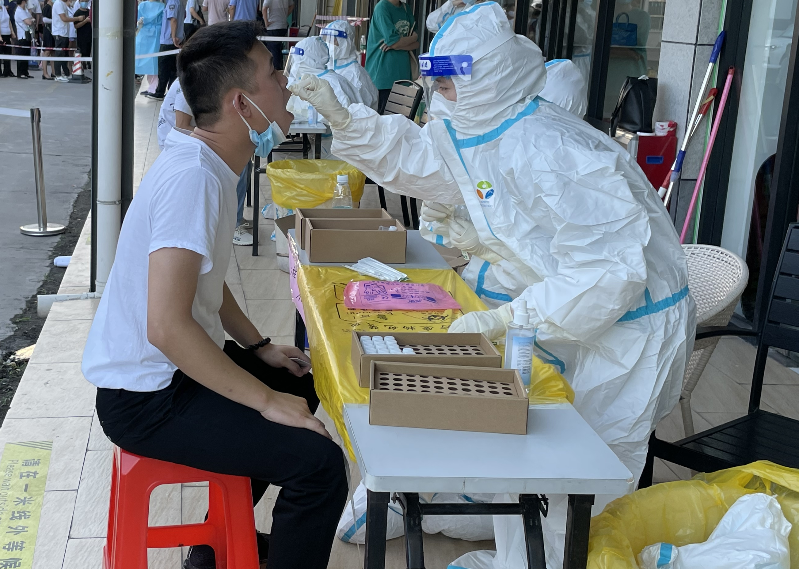 钟落潭镇相关负责人介绍,接到上级要求后,该镇迅速启动对良田村、东凤村全员核酸检测采样。其中,在良田村设置3个检测点,在东凤村设置1个检测点,党员突击队、志愿者在检测现场协助引导、维持秩序等。