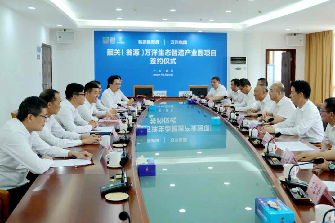 5月29日,韶关(翁源)万洋生态智造产业园项目签约仪式举行。韶关市委书记王瑞军、万洋集团总裁吴建明出席签约仪式,韶关市市长陈少荣出席签约仪式并致辞。