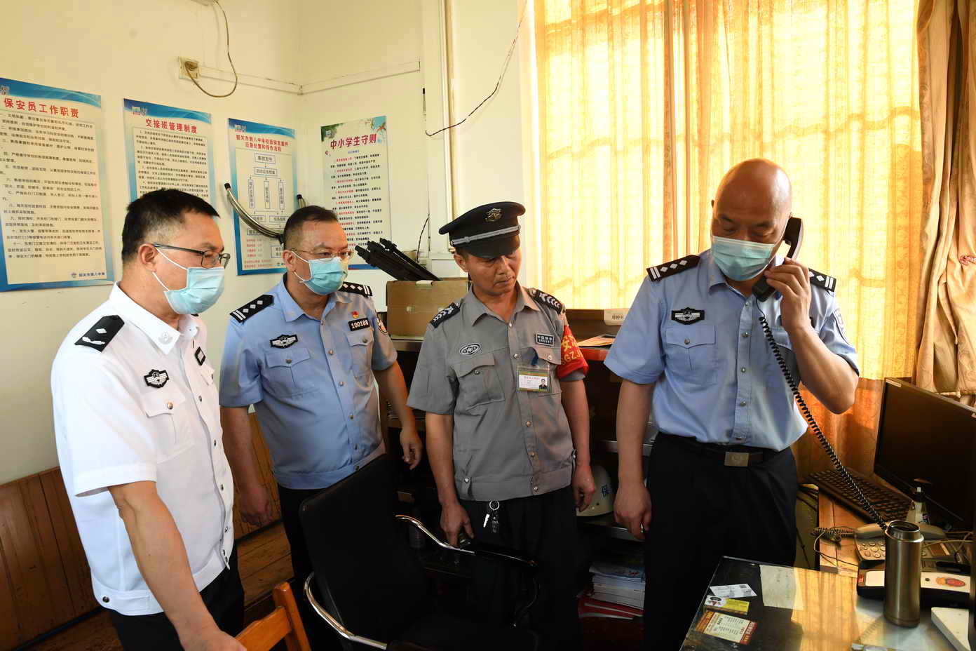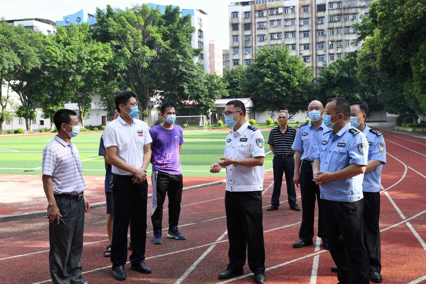 在翁源中学、武江区田家炳中学、浈江区和平路小学、韶关第八中学,谢超武实地察看了学校的周边环境、治安情况,重点检查了校园安全和防疫措施、保安人员在岗情况、防护器材配备、“一键式”报警和监控视频运行等情况。