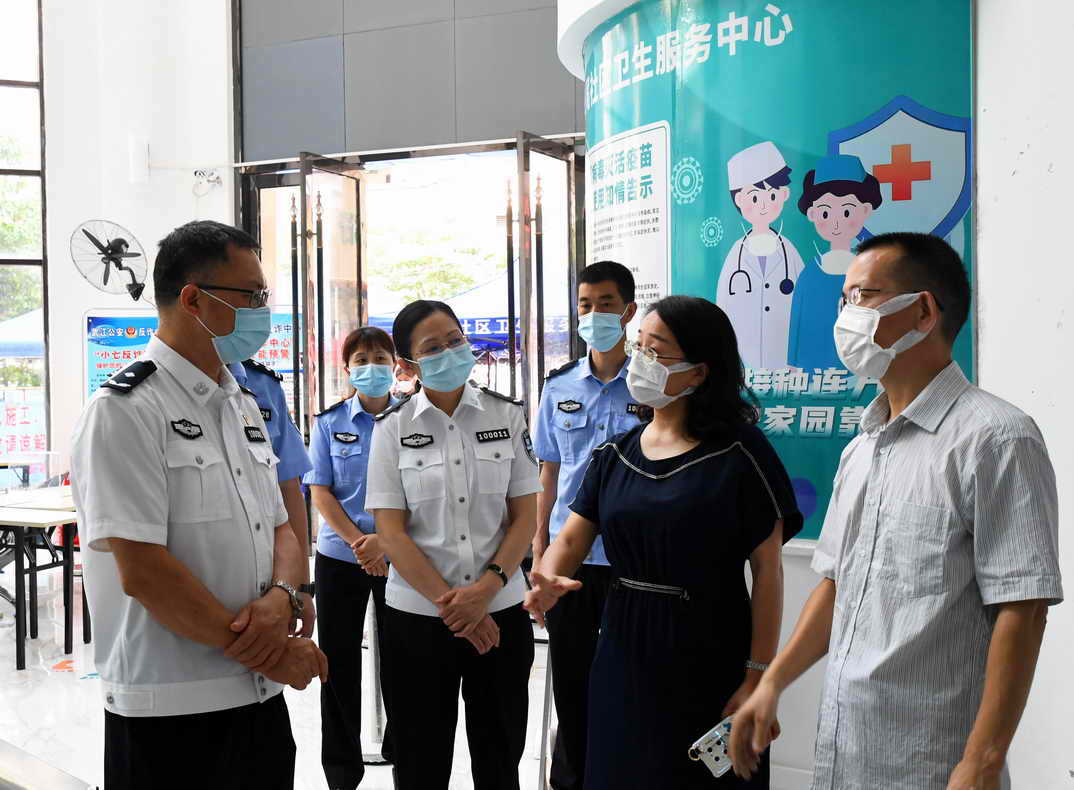 5月29日,谢超武还到武江区沙洲尾社区医院疫苗接种点督导检查接种点安保工作。在武江区沙洲尾社区医院疫苗接种点,谢超武实地查看登记区、接种区、留观区等功能分区,听取武江区卫健、公安等相关同志关于接种场地安排、接种流程、疫苗管理、接种工作进度等情况汇报。谢超武要求,卫健、社区医院等单位要进一步完善疫苗接种流程,合理设置功能分区,提高工作效率和接种服务水平。韶关市公安局武江分局要全力以赴做好疫苗接种现场安保工作,推进疫苗接种工作更加安全、有序。要强化接种场所安保力量,增派警力,会同社区干部、网格员、卫生院保卫人员有效维护场所秩序。