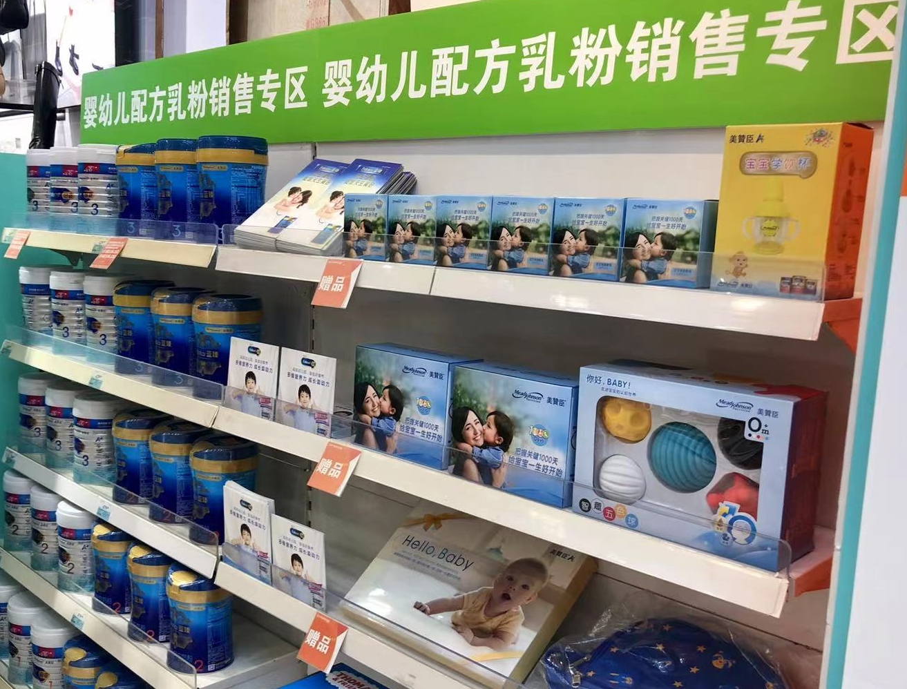 (商超婴幼儿配方奶专区产品琳琅满目)
