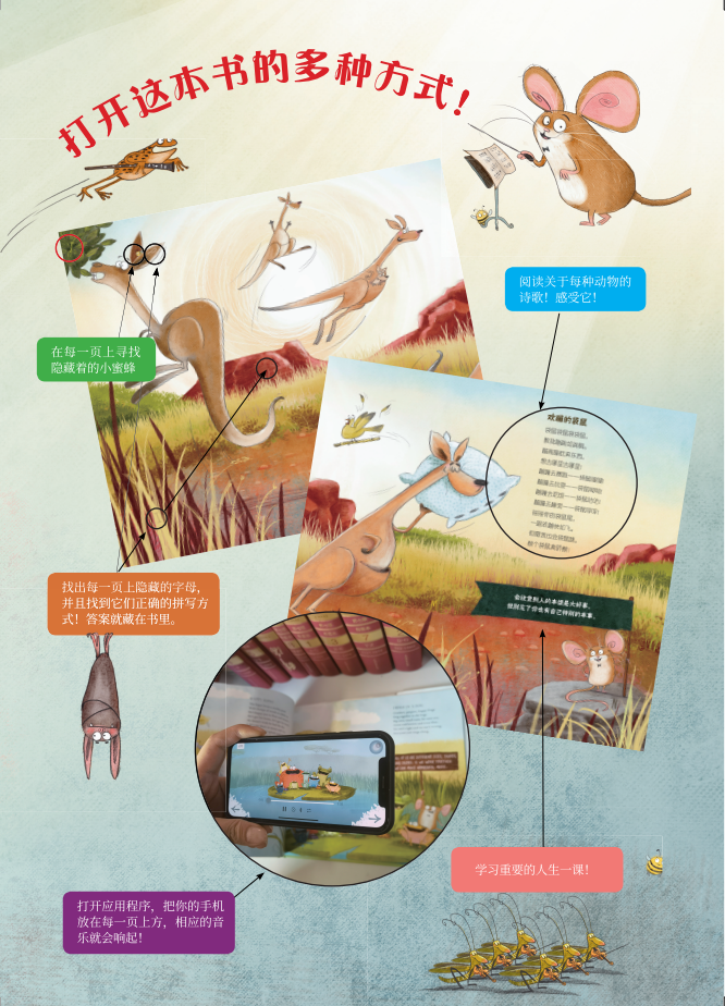 回国后,丹·布朗决定停下了手上大部分的工作,潜心打造这本儿童书。他不但创作了20首朗朗上口的童谣,20个生动有趣的动物角色,还亲自谱写了20首交响乐!让其呈现出文学、绘画、音乐三位一体的阅读体验。