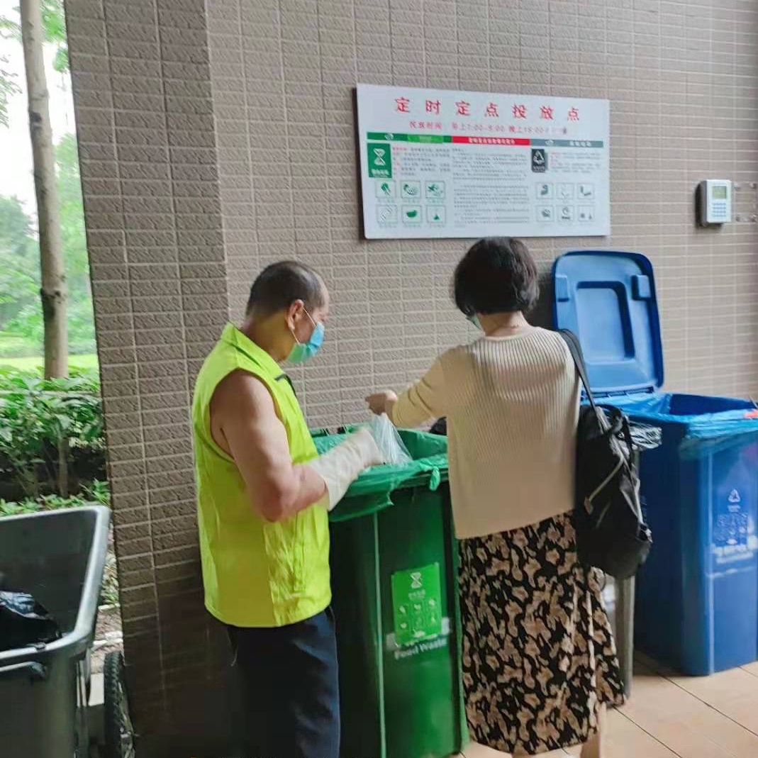 倡导垃圾科学分类,引导居民做好防疫工作。“您好,我帮您看下垃圾分类对不对,记得带好口罩哟”“丢完垃圾请到这边洗手,上班记得做好防护工作呀”。