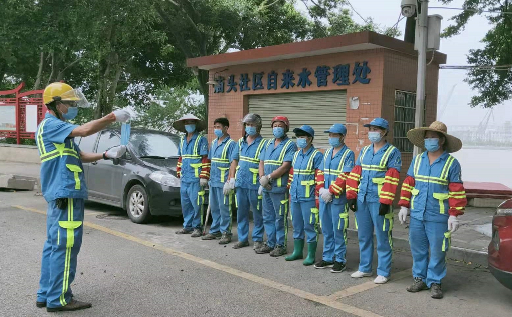 疫情期间,黄埔区各镇街迅速组织全体环卫队伍开展“全面消毒,保清洁”大行动。图为穗东街对环卫工人和垃圾分类督导员开展防疫教育工作培训。