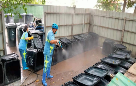 各镇街每日组织工作人员对垃圾桶、分类投放点、垃圾收集点等设施设备全面消毒。