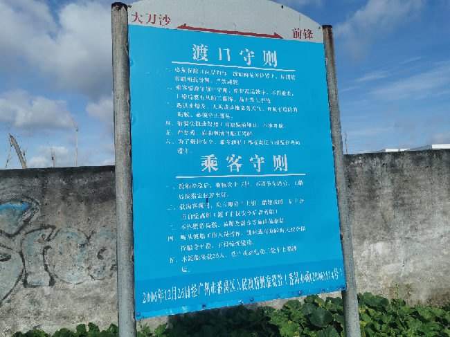 采访当天早晨6点半,记者在前锋渡口看到,有几名乘客已经搭上“粤广州渡0068”准备过河对面的大刀沙村。渡船船长郭志华说,最早的一班船是6点开出,早晨6、7点的乘客以学生为主,他们都赶着上学,所以必须要很准时。