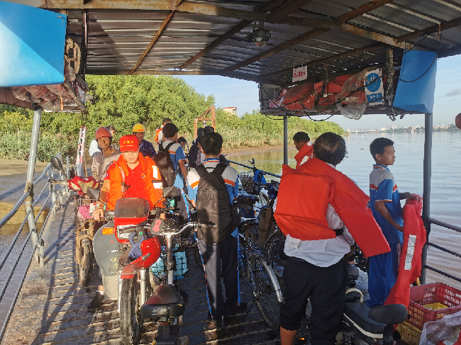 据了解,大刀沙村每年都有30多个初中生需要到位于前锋村的石碁第四中学上学,从大刀沙渡口坐船到前锋渡口,再从前锋渡口骑自行车到学校,只需十几分钟。然而,倘若是走陆路,从大刀沙村经早怡路、傍雁路、亚运大道、前锋路到达学校,自行车需要约50分钟,电动车需要近40分钟,小汽车稍快只需20多分钟。这也是大部分学生都选择坐渡船上学的原因。