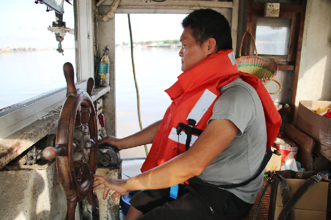 郭志华告诉记者,他们一家三代人都驾驶轮渡,以前,他爷爷靠撑农艇渡村民来往两岸,现在,他和父亲则驾驶这艘轮渡接送村民。
