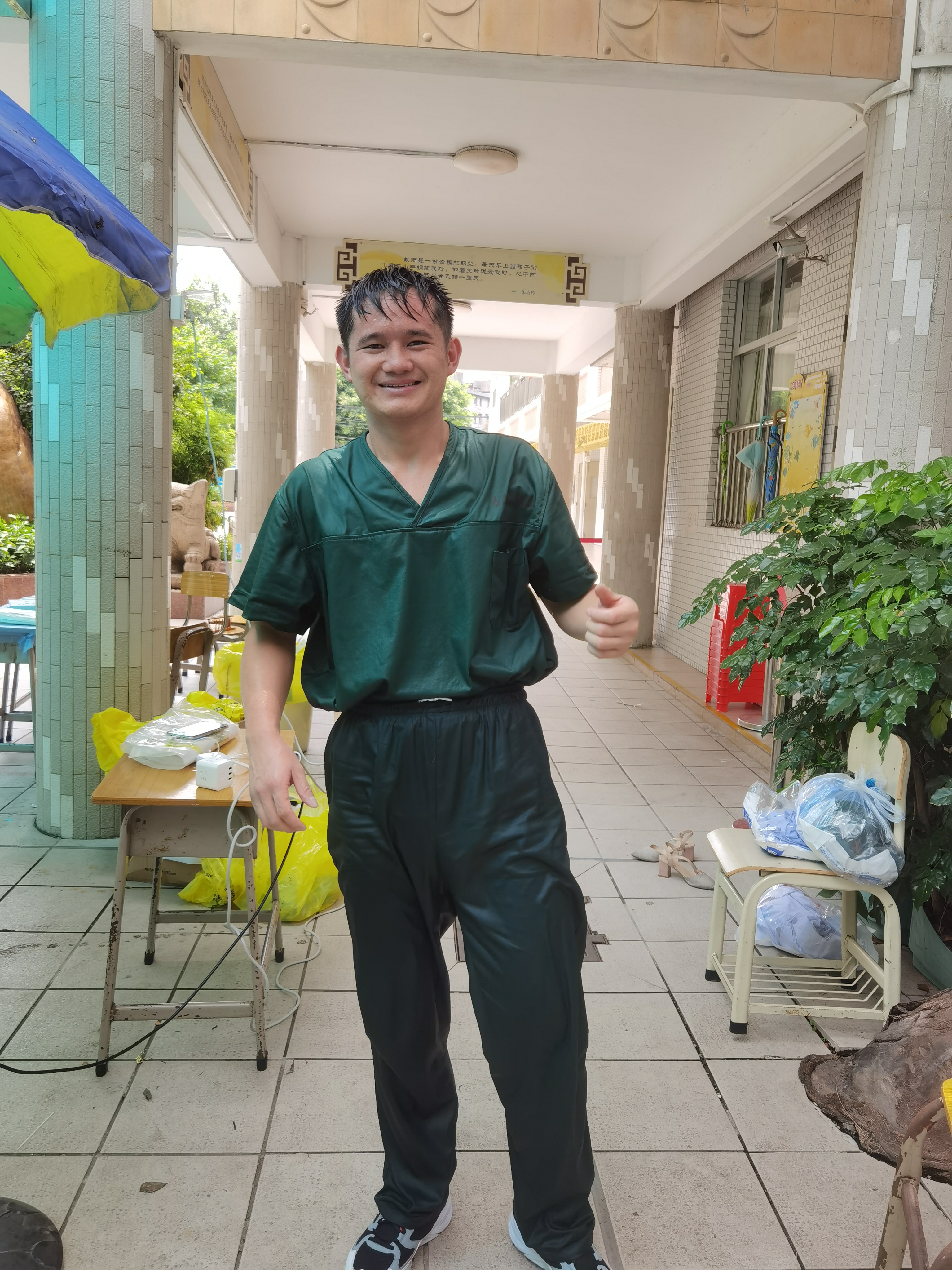 昌岗街社卫医务人员为晓港西马路小学师生完成采样后浑身湿透