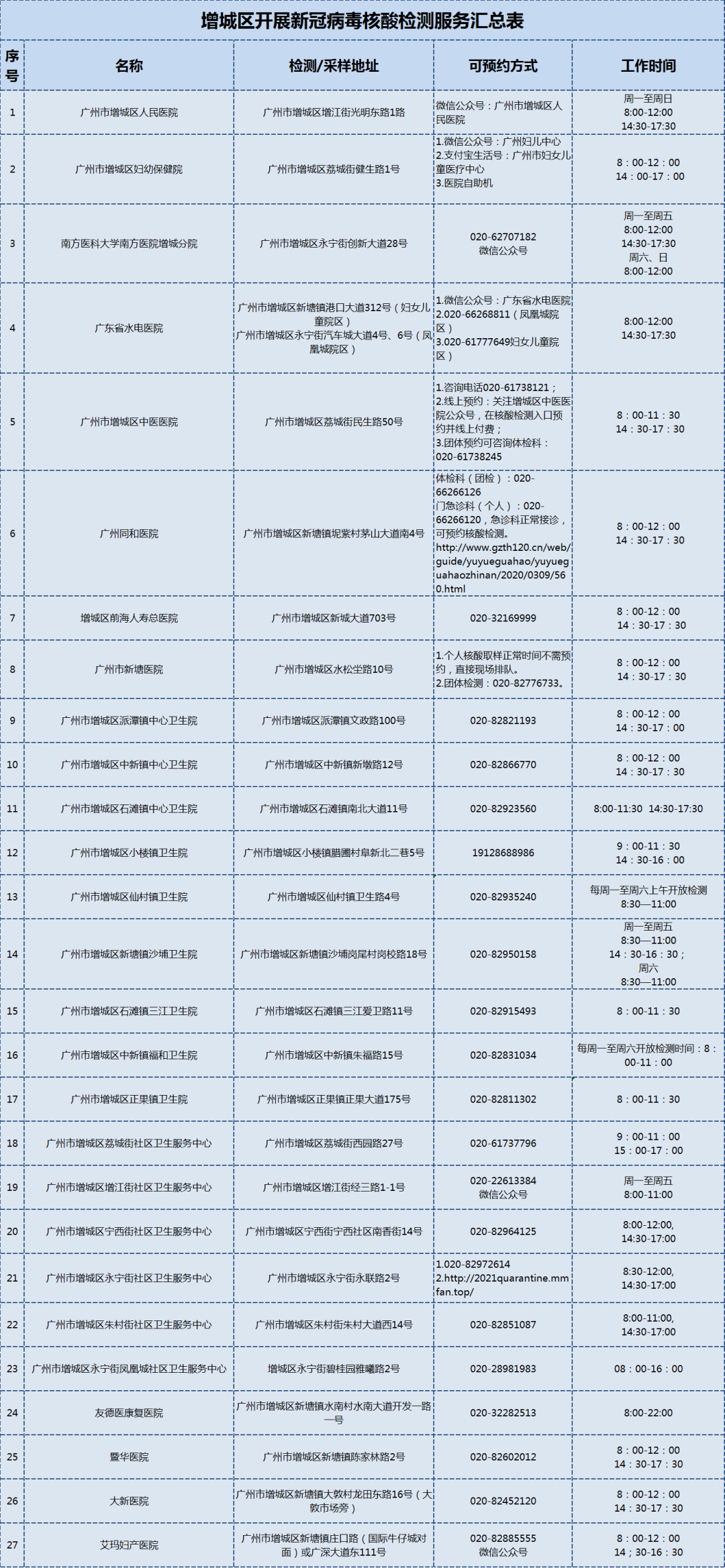 “绿码”人员可前往增城这27家医疗卫生机构开展新冠病毒核酸检测服务。