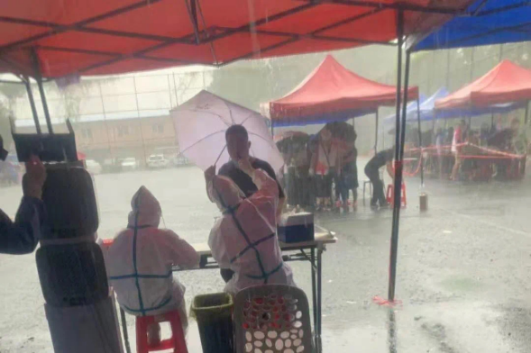 “当时只想着赶紧喝水、吃饭,休息一会,好有体力进行下一轮工作,同事们都全身湿透,没想到被拍了下来。”俊丘说,其实全身湿透对进行核酸采样的医务人员来说是常态,虽然很辛苦,但是能为市民筑起一道保护屏障,再累也值得。