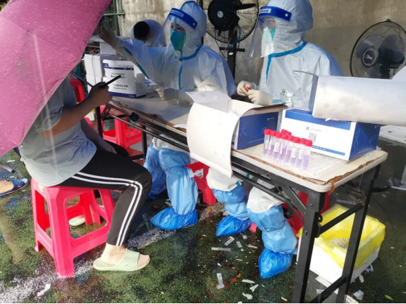 据了解,自5月28日以来,增城区派出4支队伍共417人支援荔湾区和海珠区进行大规模核酸检测标本采集工作。其中104人到荔湾区文化公园等9个核酸采样点,共采样7800多份;104人到海珠区广东财经大学、官洲赤沙社区等7个核酸采样点,共采样22000多份;209人到荔湾白鹤洞等街道的核酸采样点,共采样31000多份。