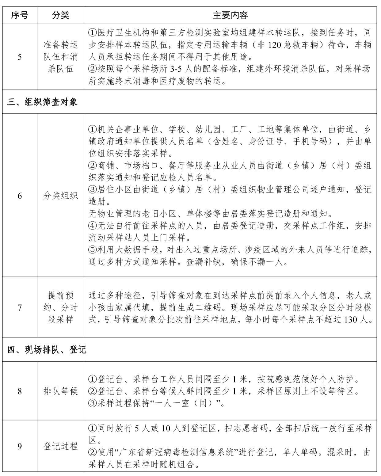为进一步保障新冠病毒大规模核酸检测的组织、采样、检测、报告全流程规范,确保实施安全有序、便捷高效广东省新冠肺炎防控指挥办新冠病毒检测工作专班制定出炉了《广东省新冠病毒大型核酸检测工作指引(试行)》。