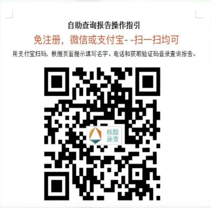 (2)打开微信或支付宝扫描下方二维码,自助查询和下载电子版核酸报告。