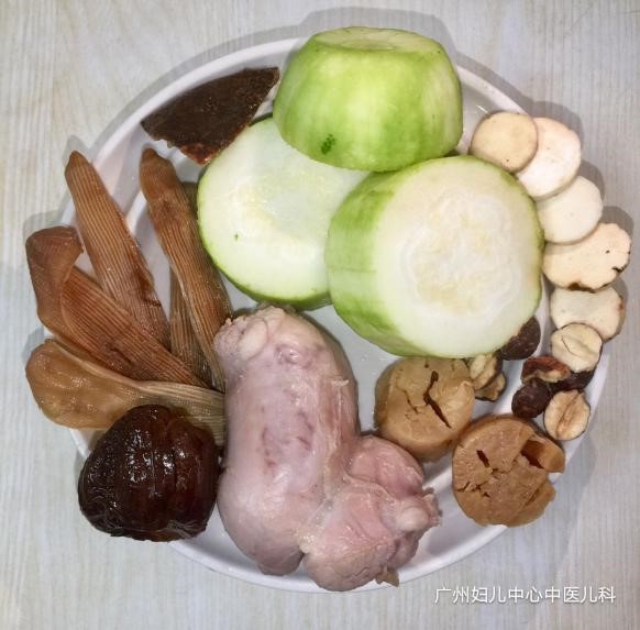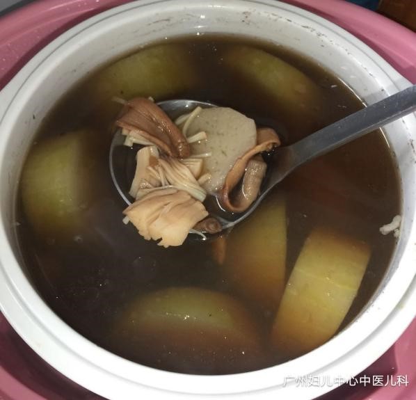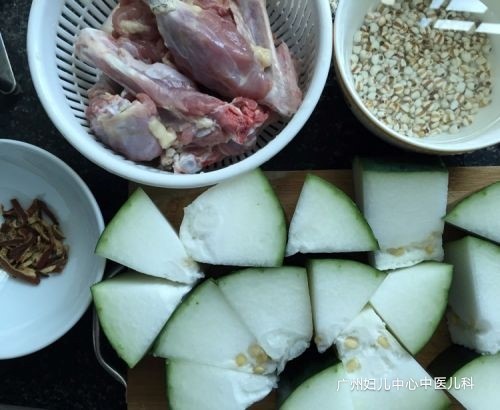 烹制:药材稍浸泡,洗净;鸭肉洗净、切块,用生姜片炒一下,一起与冬瓜下煲,加入清水1500毫升(约6碗量),武火滚沸改文火煲约2小时,下盐便可。