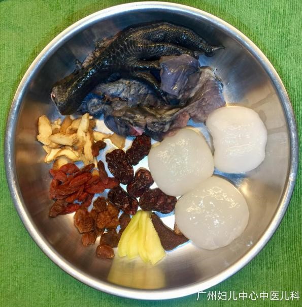 材料:海底椰50克,龙眼肉15克,杞子15克,党参10克,乌鸡半只,生姜3片。