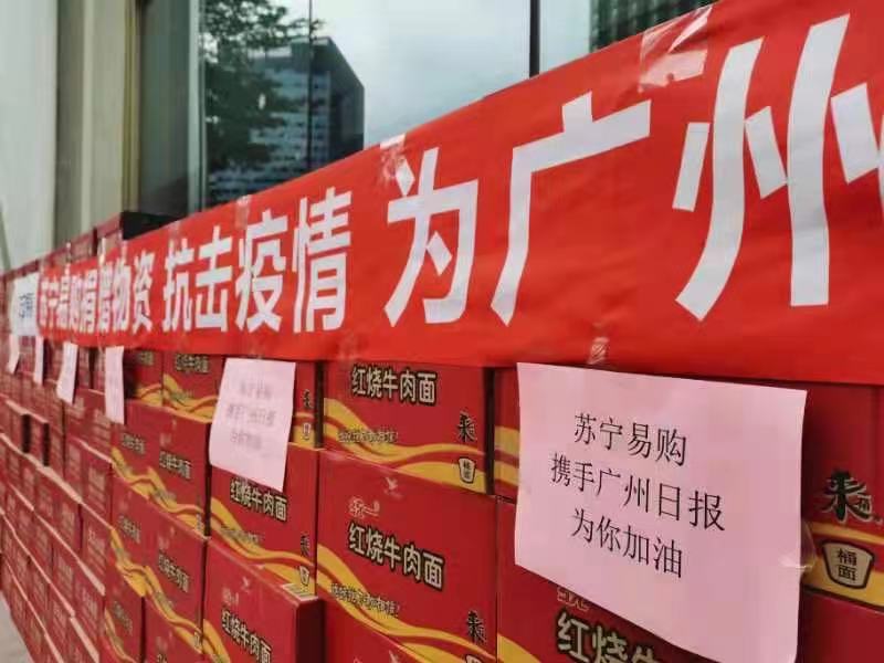 炎炎夏日,广州疫情防控正处于紧要关头,众多工作人员和志愿者奋斗在防控一线。为助力一线防控人员更好地做好疫情防控工作,广州日报报业集团携手广州企业开启“同心防疫 为你加油”公益行动。6月4日下午,广州日报携手苏宁易购向中南街街道办捐赠生活物资,第二天,中南街街道办便收到了420箱矿泉水和100箱方便面。“非常感谢!”街道办相关人士连声说。
