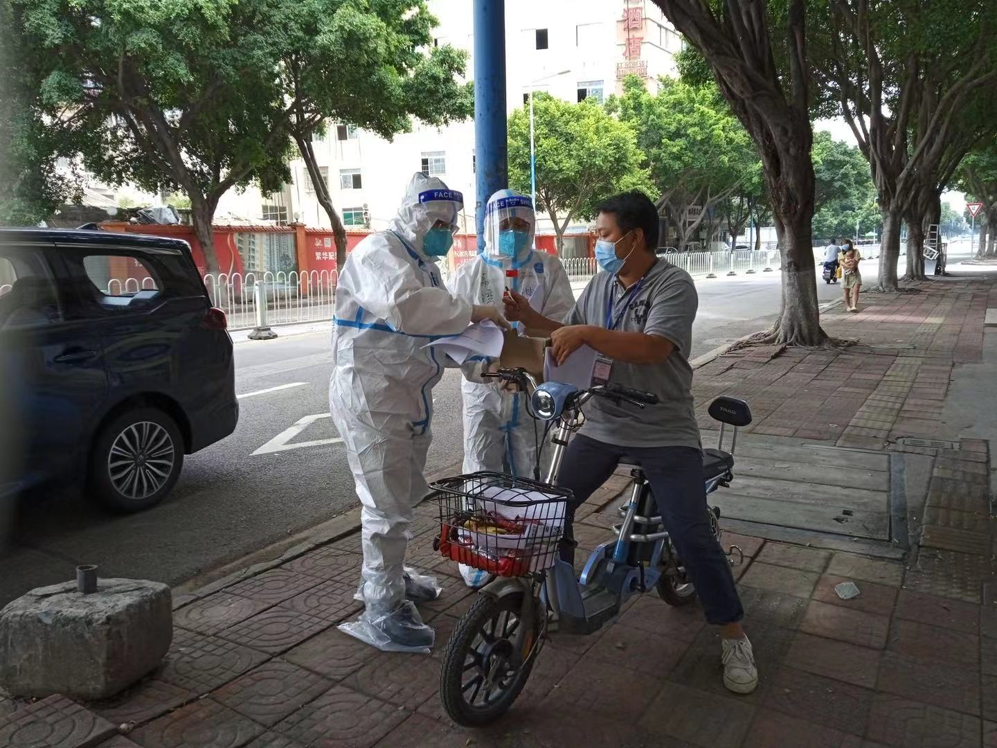 “‘战疫’我有经验,我先上。”2020年曾荣获“广州市抗疫先进个人”“广州优秀共产党员”的陈林辉面对紧急任务再次挺身而出,随即迅速投入到荔湾区中风险区域参与防疫工作。陈林辉负责的是扫楼、筛查、登记、联络等工作,连日来面对湿热和暴雨天气,他每天总是坚持工作18个小时直到凌晨2时多才能脱下被汗水浸湿的防护服。