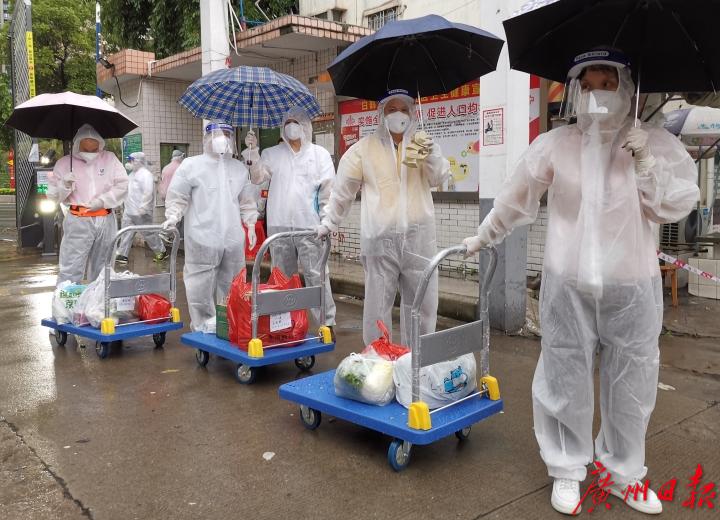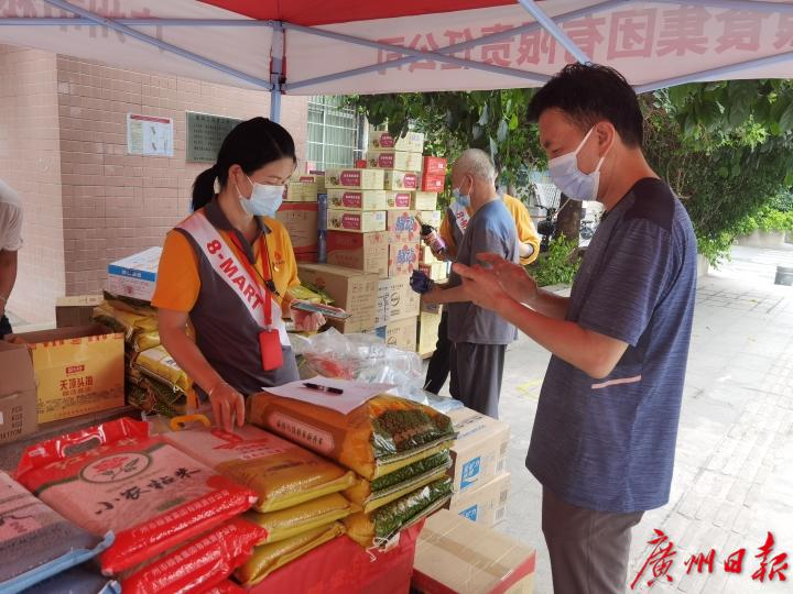 除了中南街外,广州工控“战疫先锋”志愿队队长宋智辉和记者连线时介绍,按照统一抗疫部署,他们昨天一早就集合部分队员出发进入到广钢新城,协助社区居民配送生活物资。“我们分队分成5个小组,今天主要的工作就是在封闭管理区内把外面送过来的生活物资送到社区内300户人家的家门口。听到他们出来取东西时的一声声感谢,一想到他们在炎热天气下居家抗疫还能吃到新鲜肉菜,内心顿时松了一口气。”