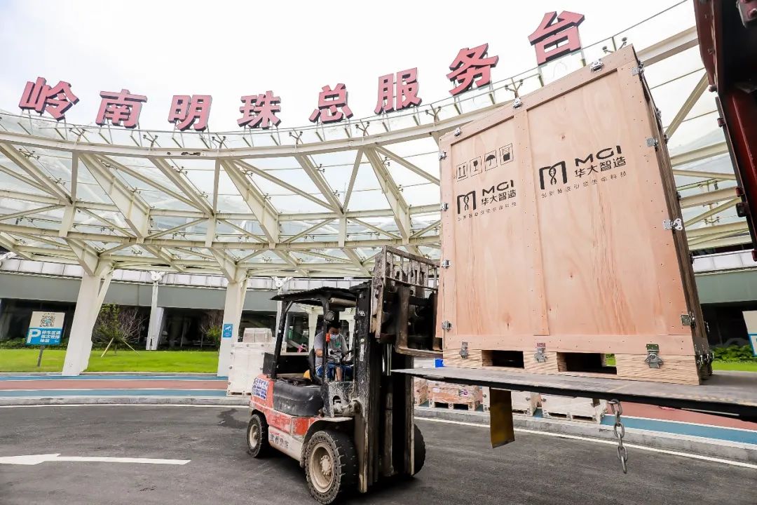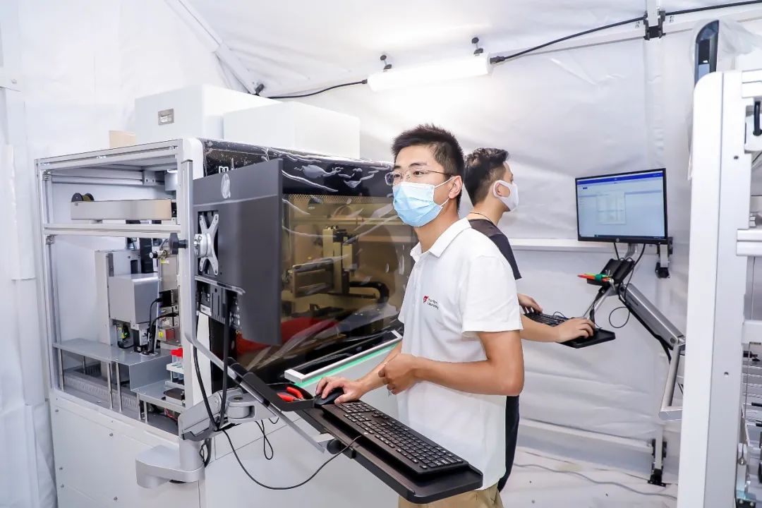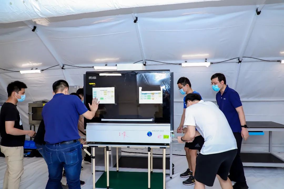 华大智造工程师们正在安装调试设备