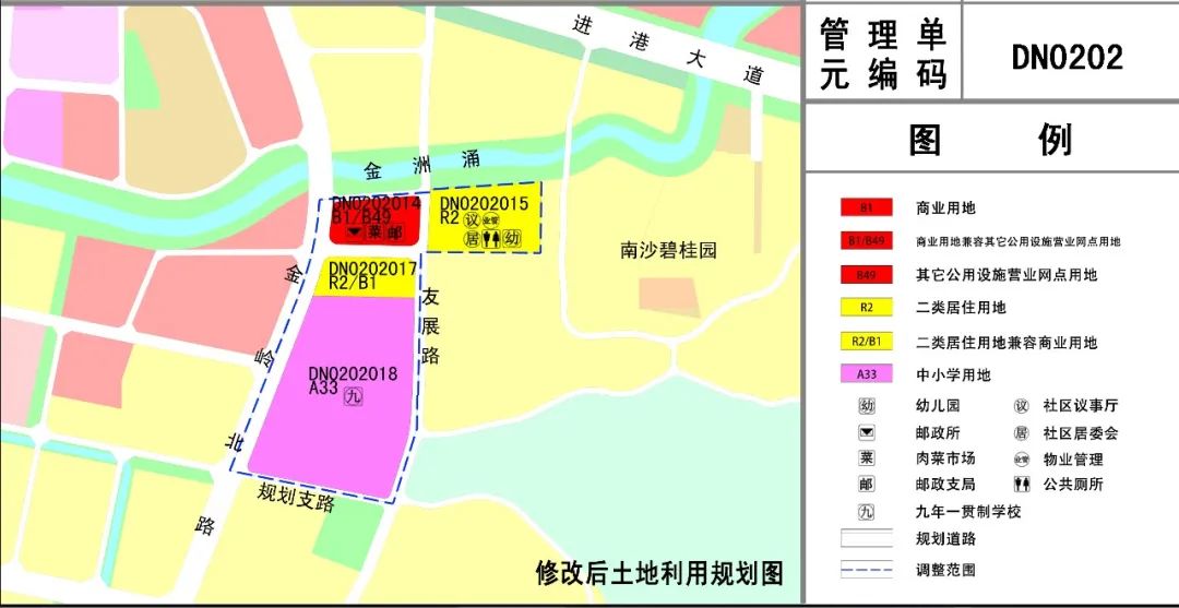 南沙街金岭北路东侧地块(DN0202规划管理单元)调整范围位于南沙街蕉门河中心区东部,西至金岭北路,东至南沙碧桂园,北至金洲涌,南至规划支路,面积12.95公顷。