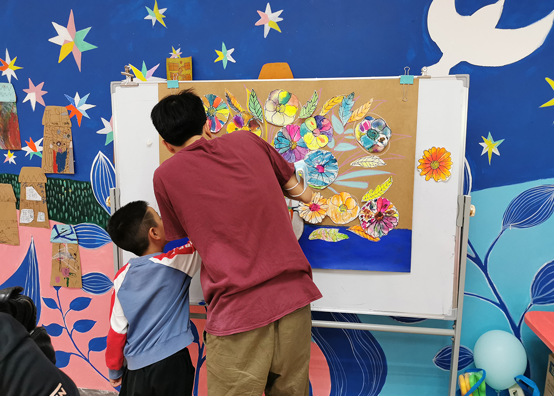 而有的家长也发生了改变。一开始,许多家长习惯性干预孩子的绘画,在刘静雯和志愿者的引导下,家长学习接受、理解孩子的绘画。有一个孩子每次都在“乱涂”色块,妈妈看了很迷惑。终于有一天,妈妈惊喜地告诉刘静雯:“孩子画的是上一次我们一起去看的彩灯!”
