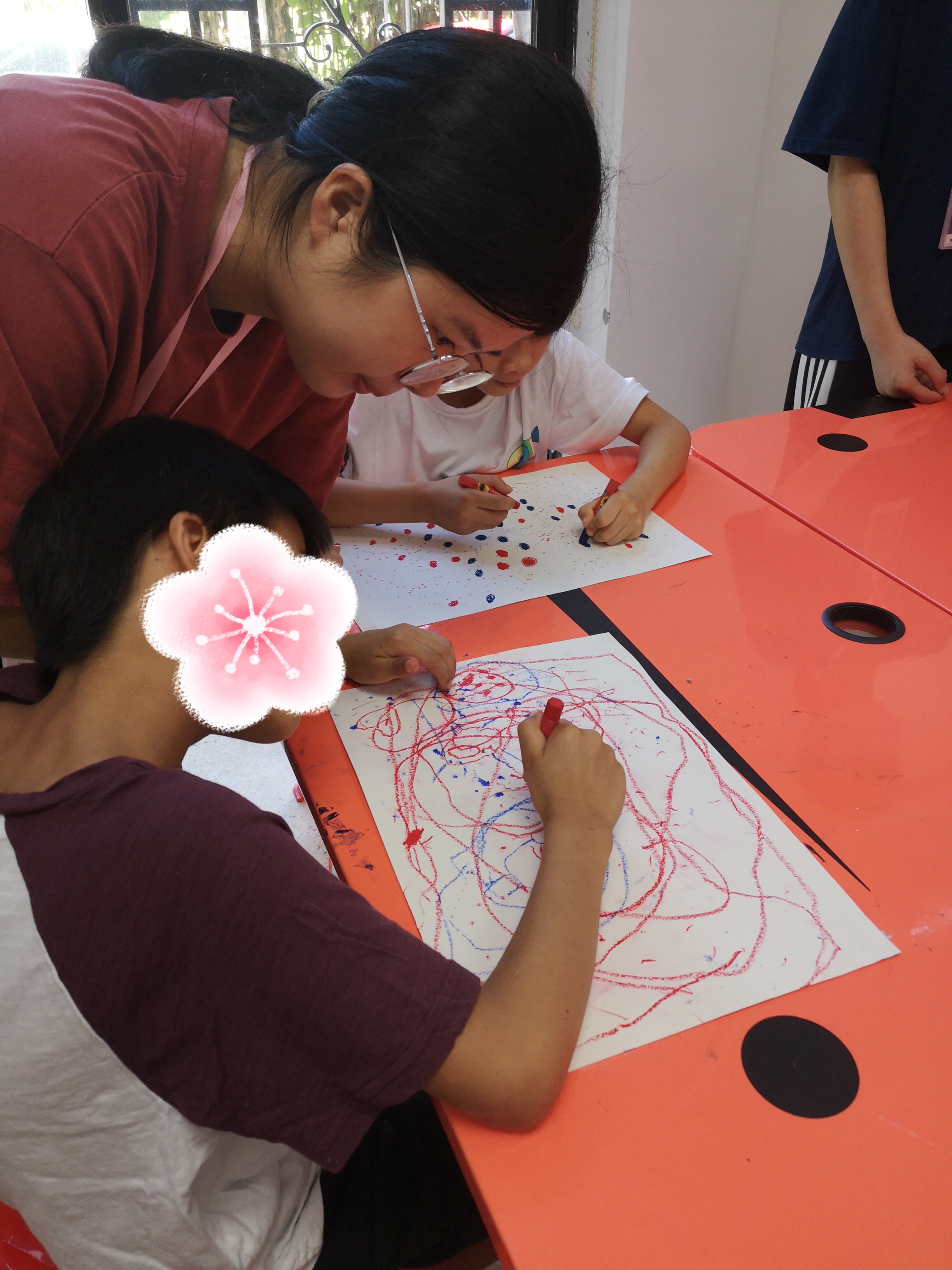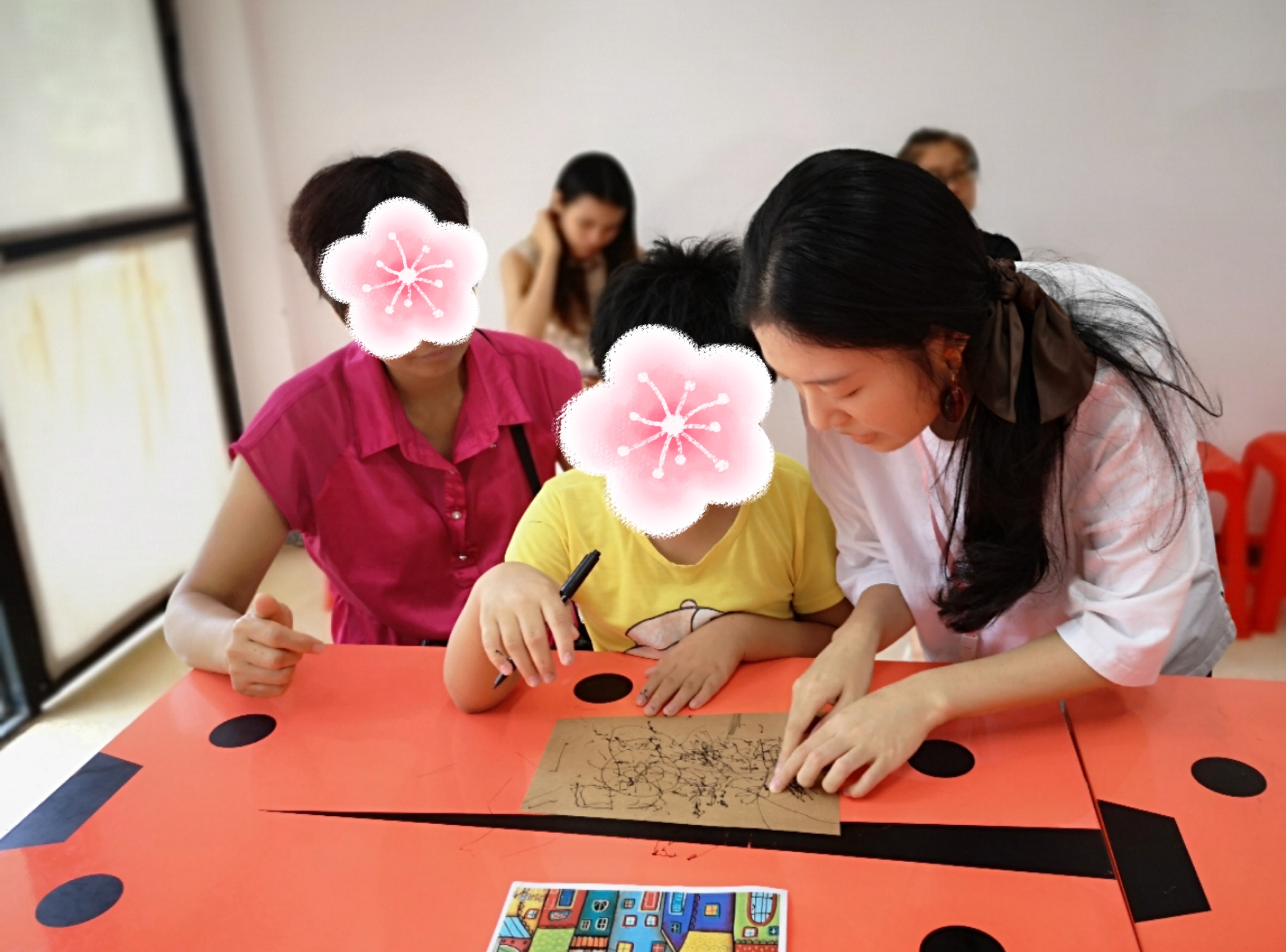 1年来,两期课程共支持了20多名自闭症孩子,年龄在6-12岁之间。“我们都看到了孩子的改变。” 刘静雯发现,本来笔下只有灰色的孩子,开始用颜色来表达自己;有的孩子的画里原来只有乌云火山,现在画面慢慢趋于平和、规则。