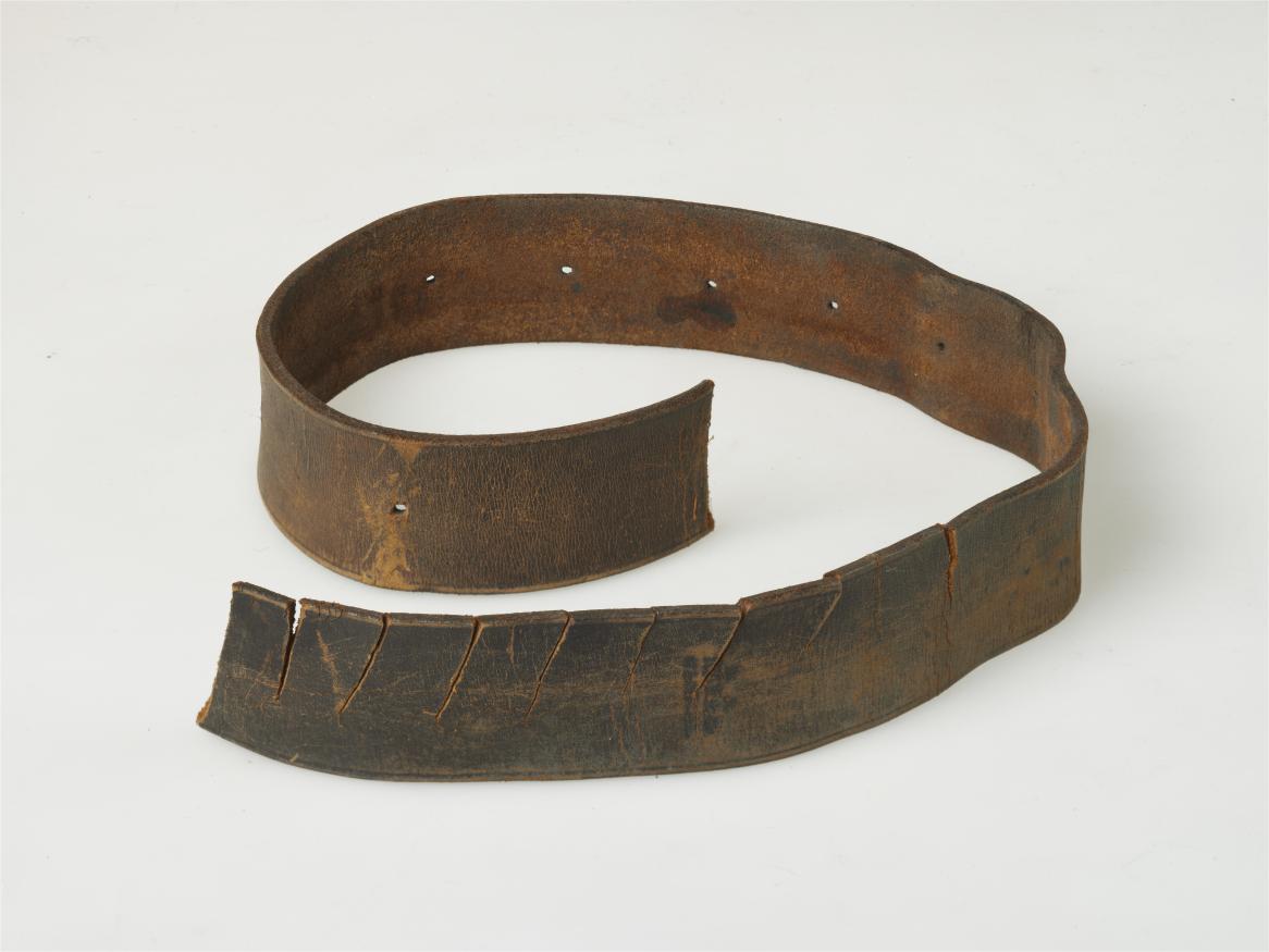 此外,中国国家博物馆还保存有几件红军将士吃剩的牛皮“食物”,也向人们讲述着那段艰苦的岁月。其中这“半截皮带”,是当时的红二方面军领导人任弼时和他的警卫员李少清吃剩下的。1978年9月25日,李少清在向当时的中国革命博物馆捐赠这件文物时介绍,1936年7月红二方面军过草地时,部队断粮,当时甚至连可食的野草、树皮都找不到,任弼时身为高级领导,也没有东西可吃,实在饥饿之下,任弼时提议吃皮带。他和战友们把皮带切割成一小段一小段,煮了后分着吃。尽管味苦难啃,大家也舍不得多吃,要省着吃,每次饿得不行的时候就吃一小段。至今,皮带上面仍保留着被切割过的痕迹。长征结束后,1938年,任弼时准备去苏联参加共产国际会议。临行前,任弼时将这段皮带交给李少清保存,还特意嘱咐:“留下皮带,以后还要吃呀!”可见艰苦的岁月,饥饿的磨难,始终烙印在长征将士们的记忆里。