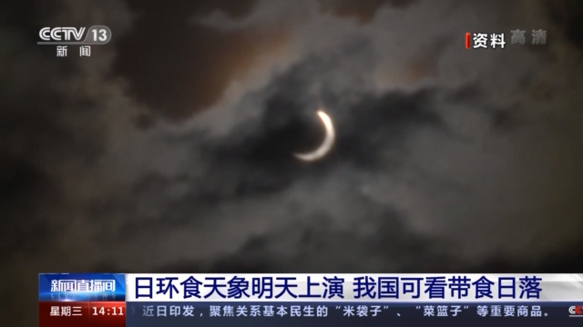 由于环食带不经过我国,因此我国境内是看不到这次日环食天象的,不过在黑龙江西部、内蒙古、新疆北部等地区的人们则可以欣赏到带食而落的日偏食。越往西,日落的时间越晚,更有利于观测。越靠近我国北部地区,日偏食的食分越大,人们可以看到太阳被遮挡的面积就越大。据推算,在我国最北部的黑龙江漠河地区,日食的食分为0.7左右,太阳会变得像一个弯弯的月牙儿。在哈尔滨、北京、西安等地基本上都是日落的时候日食才刚刚开始,因此这些地区的人们难以看到这次天象。