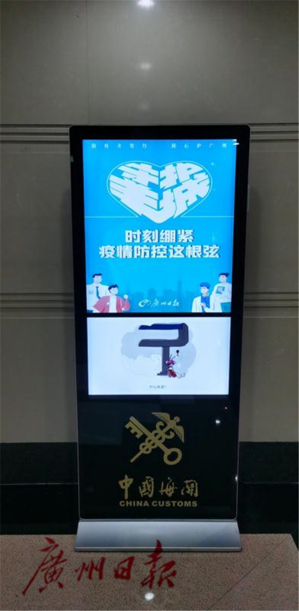 广州南站、广州海关、黄埔海关缉私局等单位也在各个显眼的位置滚动播放该系列海报“坚决打赢疫情防控硬仗”等标语