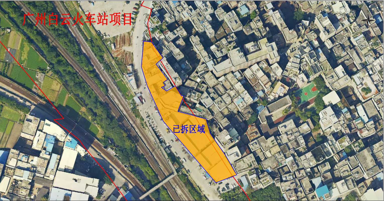 近日,白云区攻坚克难,完成了广州白云站项目白云湖街环滘村8栋集体住宅房屋拆迁工作,有效保障了项目施工进度。目前,白云站项目场站主体已全部完成征收。此次8栋集体住宅房屋的拆除,为后续新线路轨道铺设、新线路引入、白云站项目按期建成通车,奠定了坚实的基础。