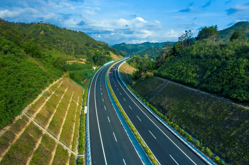 行驶在云茂高速,远处山脉连绵不断,沿线边坡郁郁葱葱,两旁树木枝繁叶茂。云茂高速宛如一条巨龙,蜿蜒在崇山峻岭之间,与沿线环境相映成趣、和谐自然。