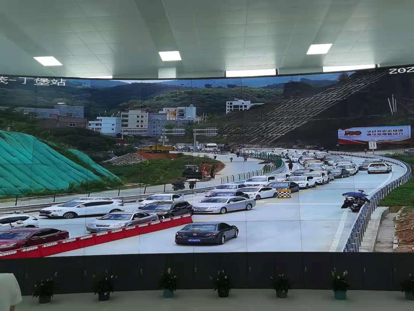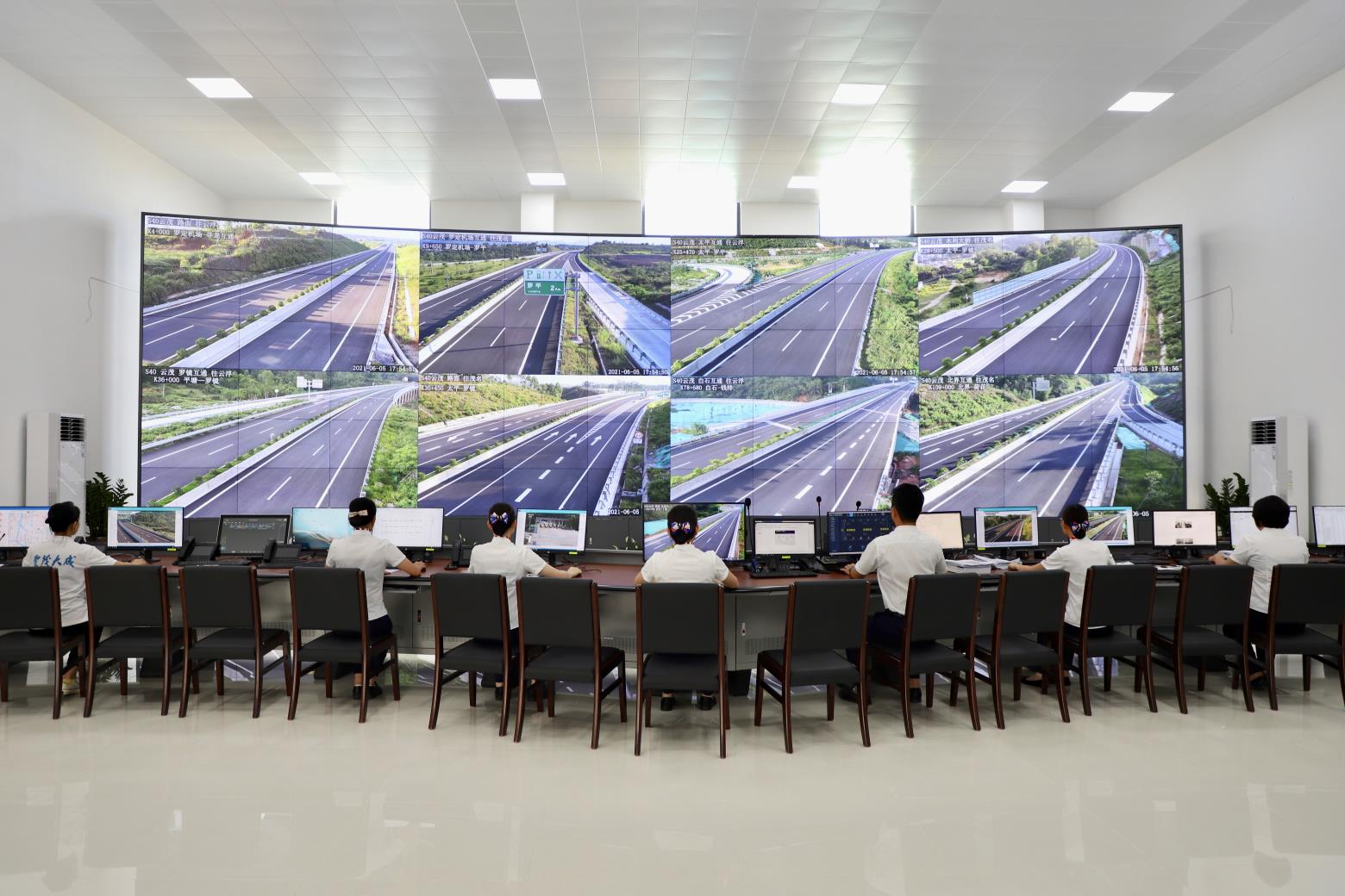 云茂高速监控大厅。在云茂高速监控大厅,72台55寸液晶显示屏组成监控大屏,采用8K超高清分辨率可视化系统,还引入大数据可视化平台,可对路段交通流量、交通事件数量、路政到场时间等数据进行分析,有助于监控员实时监控、全程调度,妥善、高效处置突发事件。