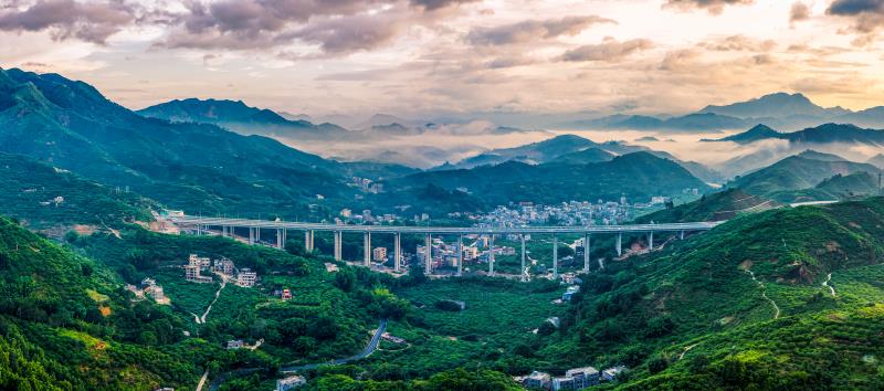 云茂高速古党坪大桥。3个服务区、10个出入口同步开通