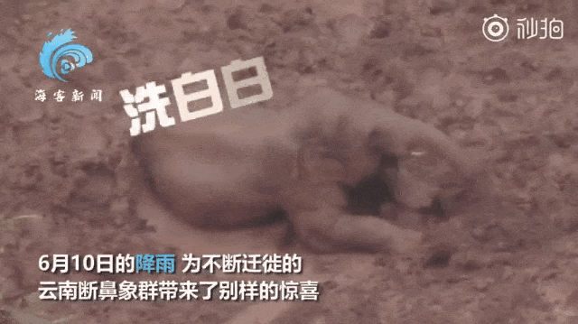 野象团中的象宝宝,一直在淌泥水、糊泥脸,在泥汤里滚来滚去……简直可可爱爱。