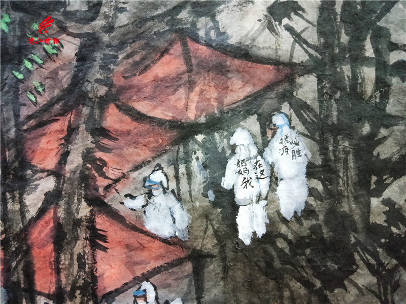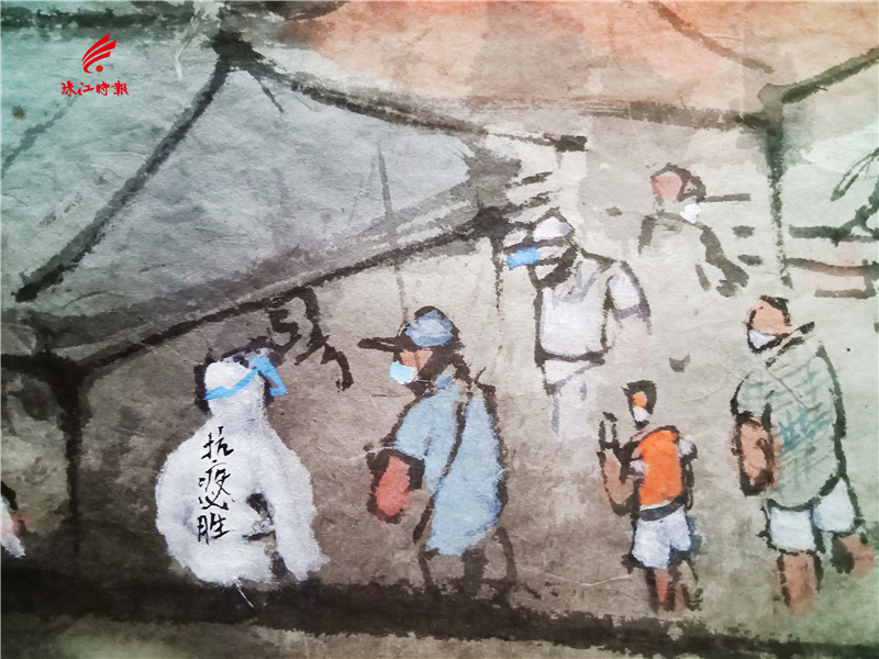 如今,水墨长卷《众志成城》已经进入收尾阶段,郑现峰计划再用一个星期的时间,把画卷进行润色,补充细节,加入更多的人物,务求把作品完美的呈现。