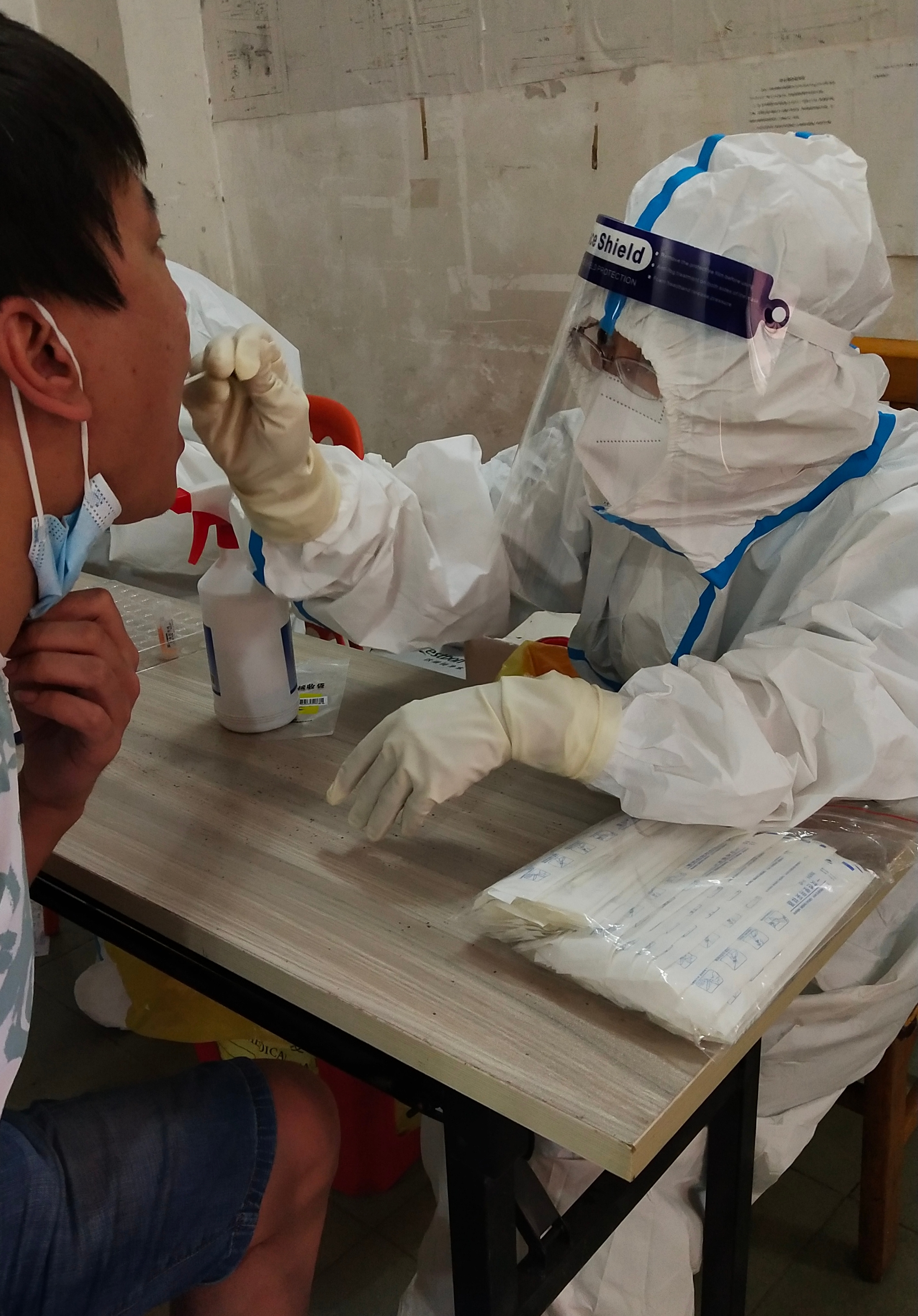 6月4日下午,南沙区第六人民医院紧急派出首批20位医护人员,前往天河区支援核酸采样工作。该院口腔科主任、预防保健科副科长何启超就是其中一员。