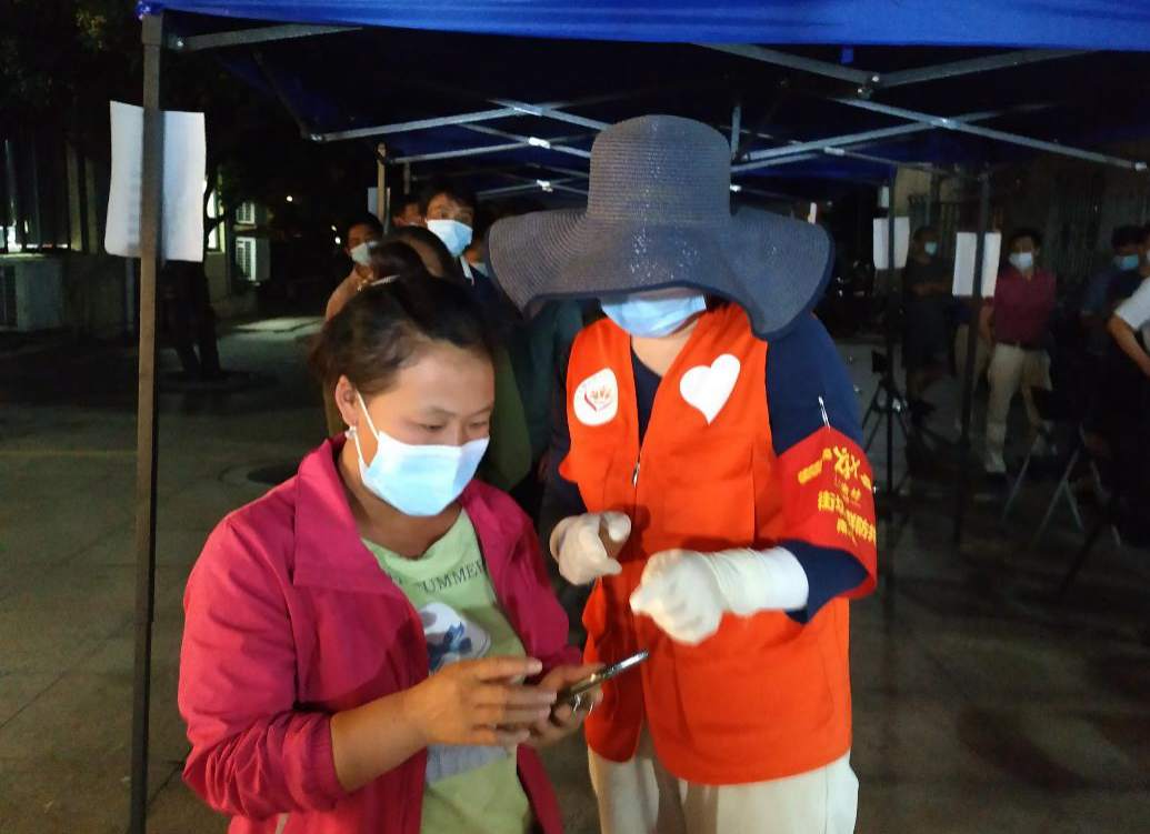 “一米线!一米线!大家注意安全,戴好口罩!”6月6日凌晨1点,龙穴街道的一处核酸检测点,社区“两委”干部杨志华拿着扩音器在等待核酸检测的人群中穿梭,维持秩序。走过队尾的时候,他向着另一个维持秩序的社工志愿者胡芳比划了加油的手势。胡芳笑了笑回应了他,随后继续专心帮助社区群众填报葵花码。