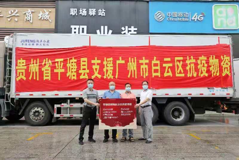 我们跨越山水决战脱贫,你们驰援千里共抗疫情!一袋袋大米、一箱箱五谷蛋、一篮篮果菜……6月13日,跨越1000公里,连夜开了11个小时,两辆满载防疫应急物资的大货车,终于从贵州省平塘县抵达广州市白云区,支援白云区疫情防控工作。