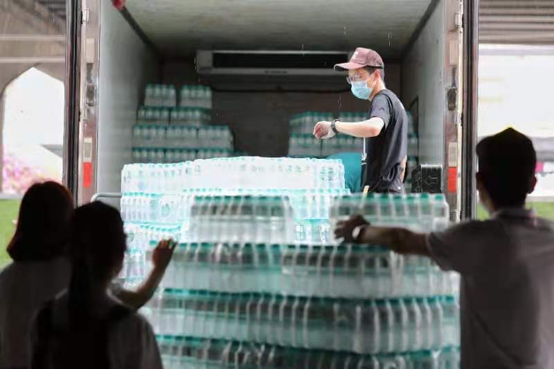 适逢大雨倾盆,工作人员冒雨将驰援物资迅速搬运下来,不一会儿,白云区供销联社的应急物资储备点就堆满了捐赠物资。当天,白云区医疗机构纷纷到现场领取物资,一份份真情在雨中传递,一股股暖流在心间流淌,共同汇聚成齐心抗疫的强大力量。