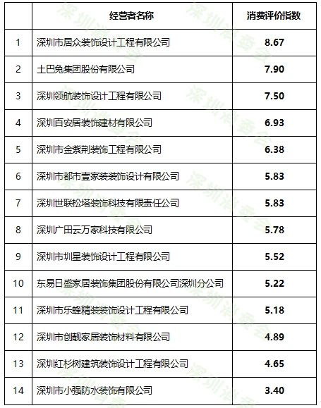 装修公司哪家靠谱?15日,深圳消委会发布了“月月3·15”深圳市装饰装修行业消费评价指数排行榜,建议消费者优先选择消费评价指数较高、“好人举手”承诺商家进行消费。消费者可通过“深圳市消费者委员会”官网及微信公众号、“315消费通”微信公众号及小程序、“315消费网”、深圳信用网、“i深圳”App、百度“爱企查”等平台查询经营者的消费评价指数。并通过“深圳市消费者委员会”官网及微信公众号和“315消费网”查询投诉公示、“好人举手”承诺等信息。