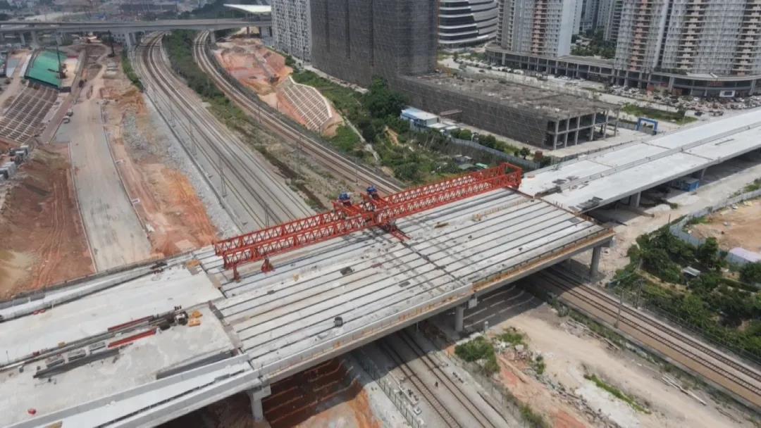 纵一路架梁的完成,标志着广汕铁路新塘站交通枢纽建设又向前迈进了一大步,也为广汕铁路的全线建成通车打下了坚实基础。