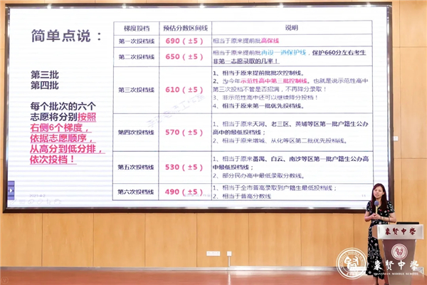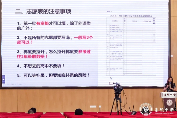 除了有冯校亲自解读政策,学校还请来了报考指导经验丰富的李珍老师作专家讲座,从分数线、估分、科学填报志愿等角度给家长带来众多“干货”。