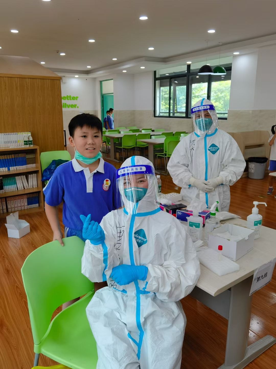 妈妈名叫唐慧敏,是深圳市第三人民医院的儿科护士,6月15日原本是她休息的日子,她却放弃休假,主动申请加入到深圳市骨科医院(宝龙院)的核酸采样义工队伍,当天刚好和丈夫一起被分到了儿子所在的学校。