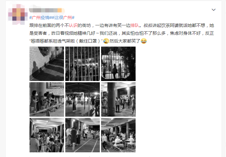 一致对外。排队时候,街坊或是陌生人的关爱,也处处体现着广州的人情味。