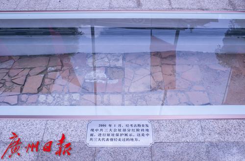中共三大会址部分红阶砖地面原址保护展示图/广州日报·新花城记者 庄小龙 罗知锋