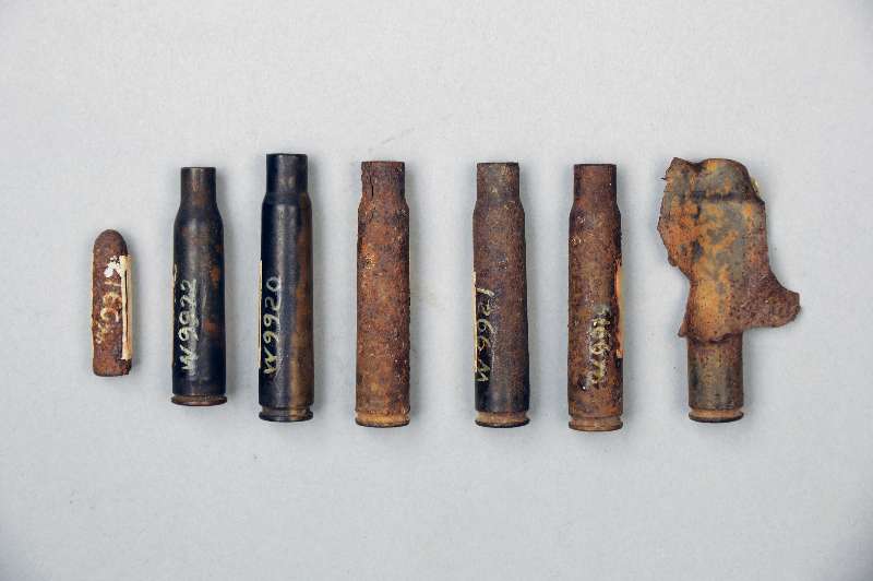 这批子弹壳共7颗,部分锈蚀严重,其中一颗呈爆裂状。它们被使用的地点,是大埔县三河坝梅子岽。